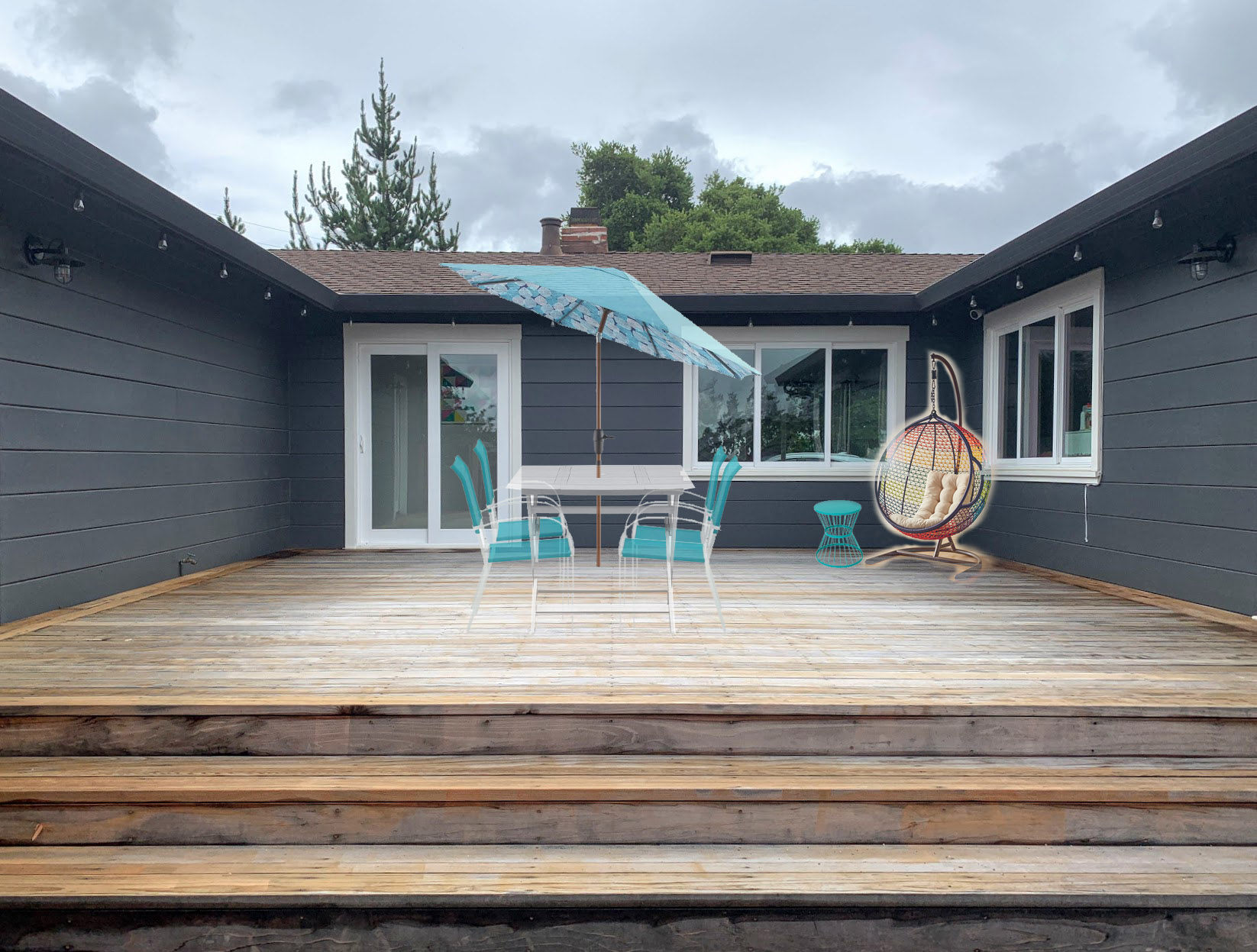 To keep the flow simple we’re focusing on getting a dining area set up right in the middle of the deck. I’m also dead set on getting myself the Swingasan rainbow swing chair from the first image on this post so I can enjoy my afternoon coffee outside when the weather is nice :).
