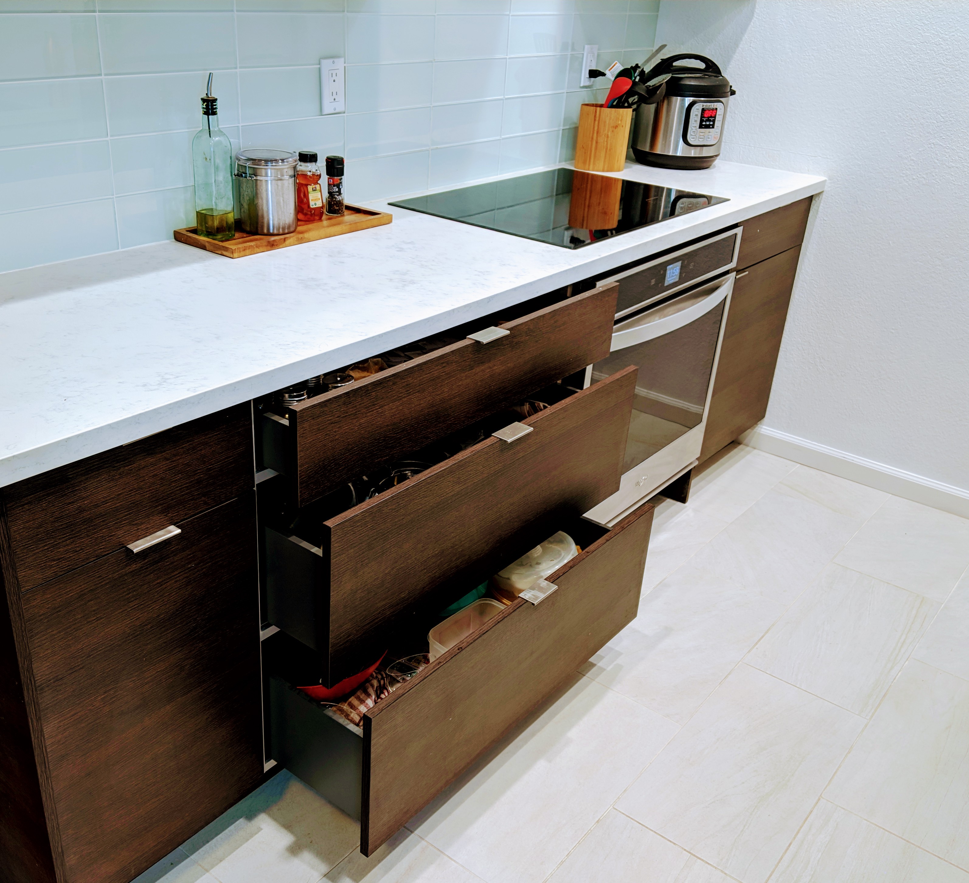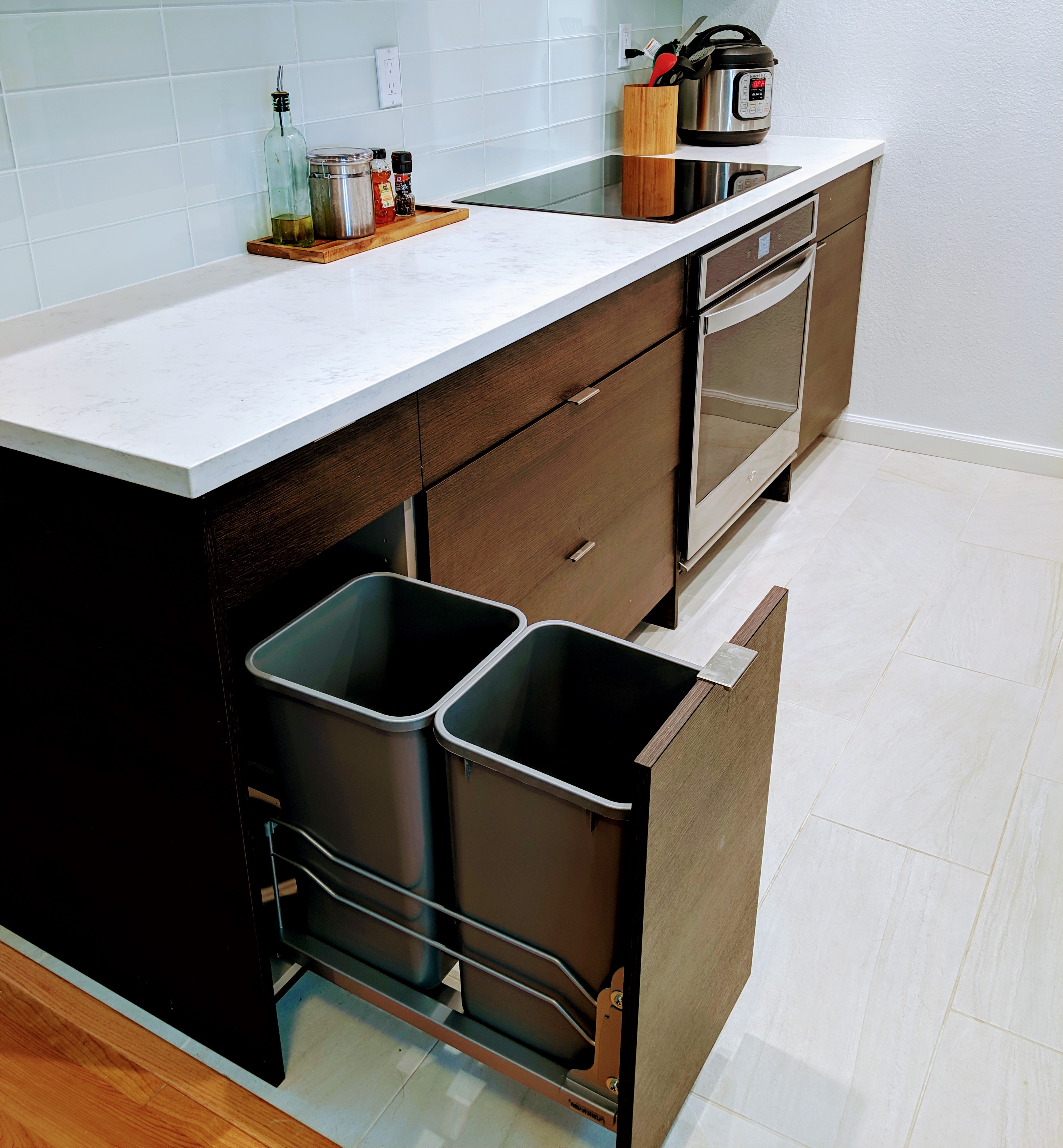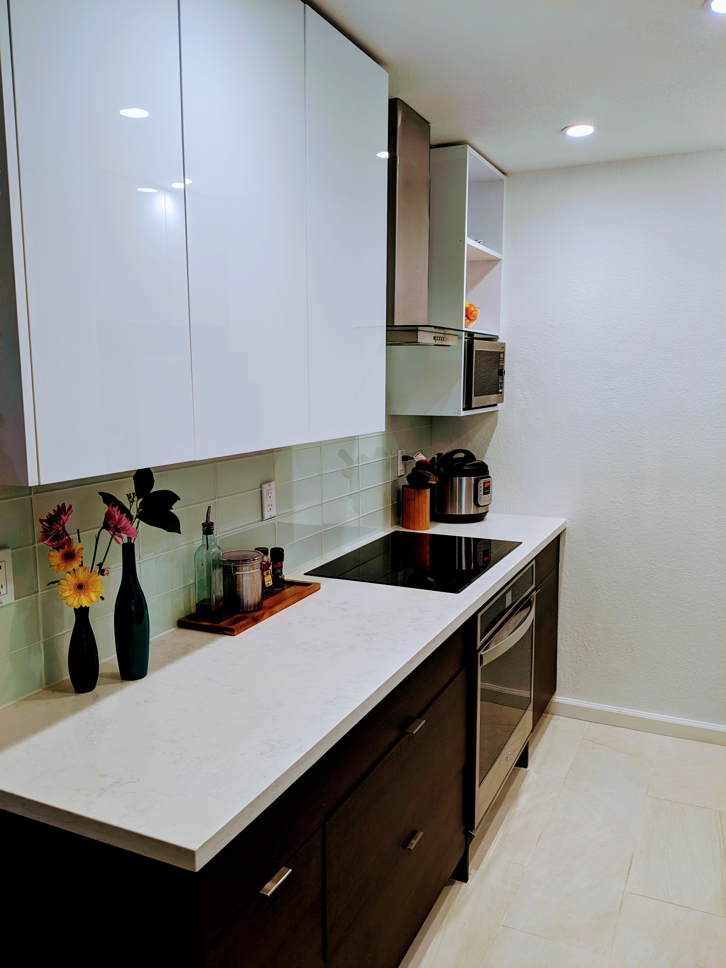 The client chose a drop-in induction cooktop with a separate oven below and it turned out amazing! Yes it’s slightly more costly to buy two separate appliances compared to a stove/oven combo but this is a one time cost and a sleeker solution. If you’re interested in learning more about induction cooktops, check out this article.