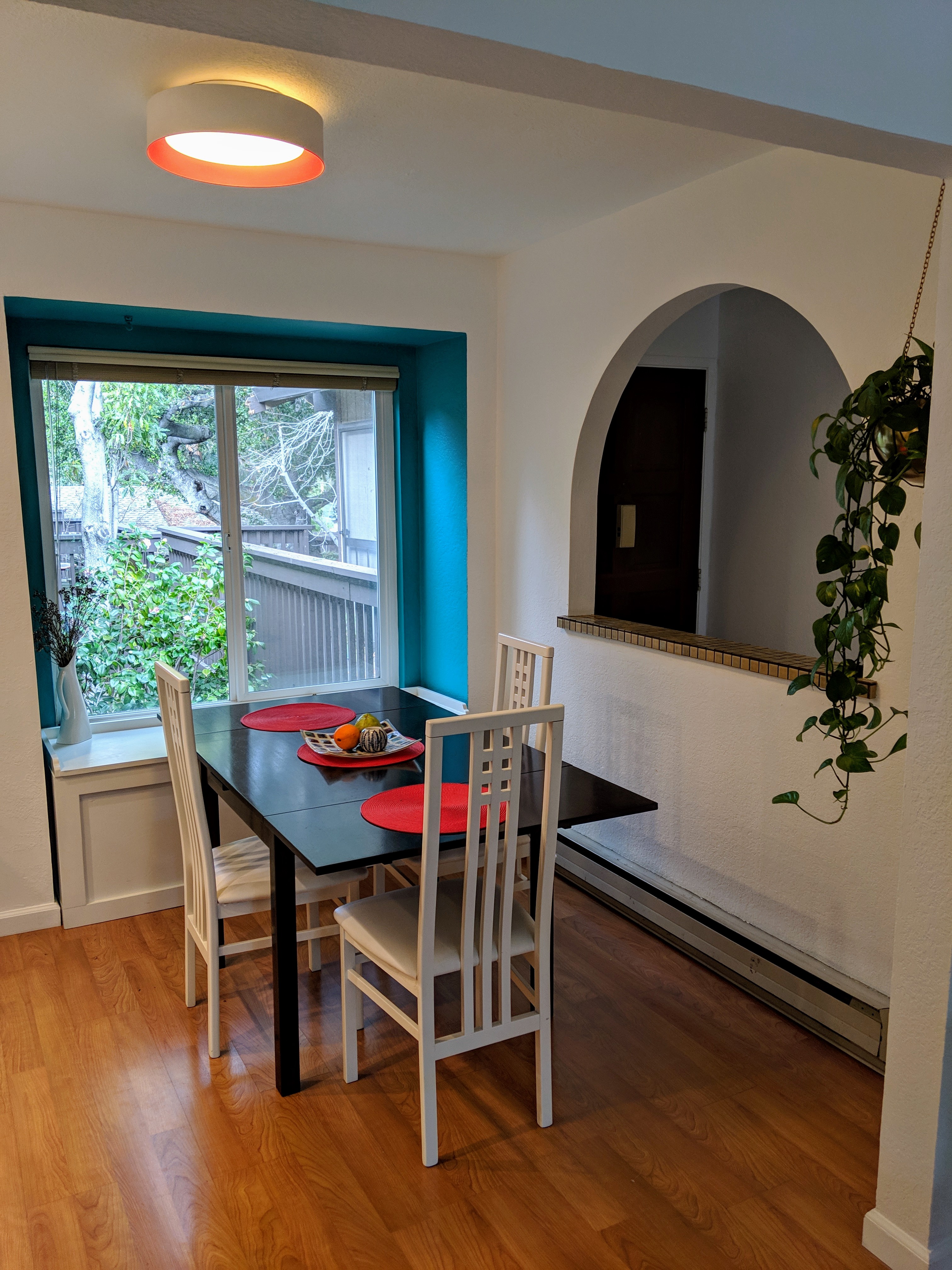 Painting the window niche in an accent paint created a focal point when looking into the dining from the living room