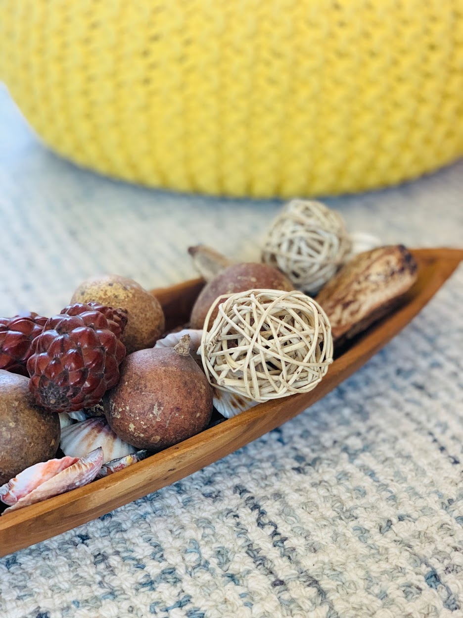 Other nature inspired decor elements can be shells, rocks, sand, straw, wood and pine cones. Create an arrangement of these in a beautiful bowl (like the image below) and you’re good to go! If you’re into seashells as decor you’ve got to check out this fun post over at Emily Henderson’s blog!