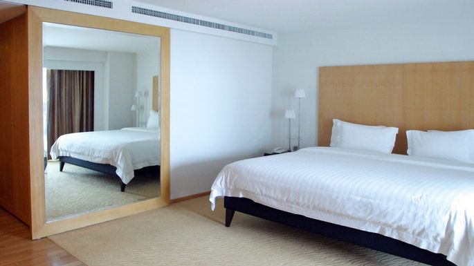 Fixing a full-sized mirror creates the illusion of a room that is larger and adds energy to the space. It creates the illusion of a larger bedroom if your space is small. Another trick is to add a big mirror on the opposite side of a window in your room so the mirror catches that light making the room appear bigger.